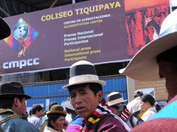 Des représentants des peuples indigènes attendent leurs accréditations pour participer à la Conférence