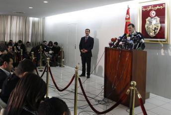 Laraydeh Ali Larayedh, ministre de l’Intérieur sortant, désigné premier ministre, en conférence de presse le 26 février